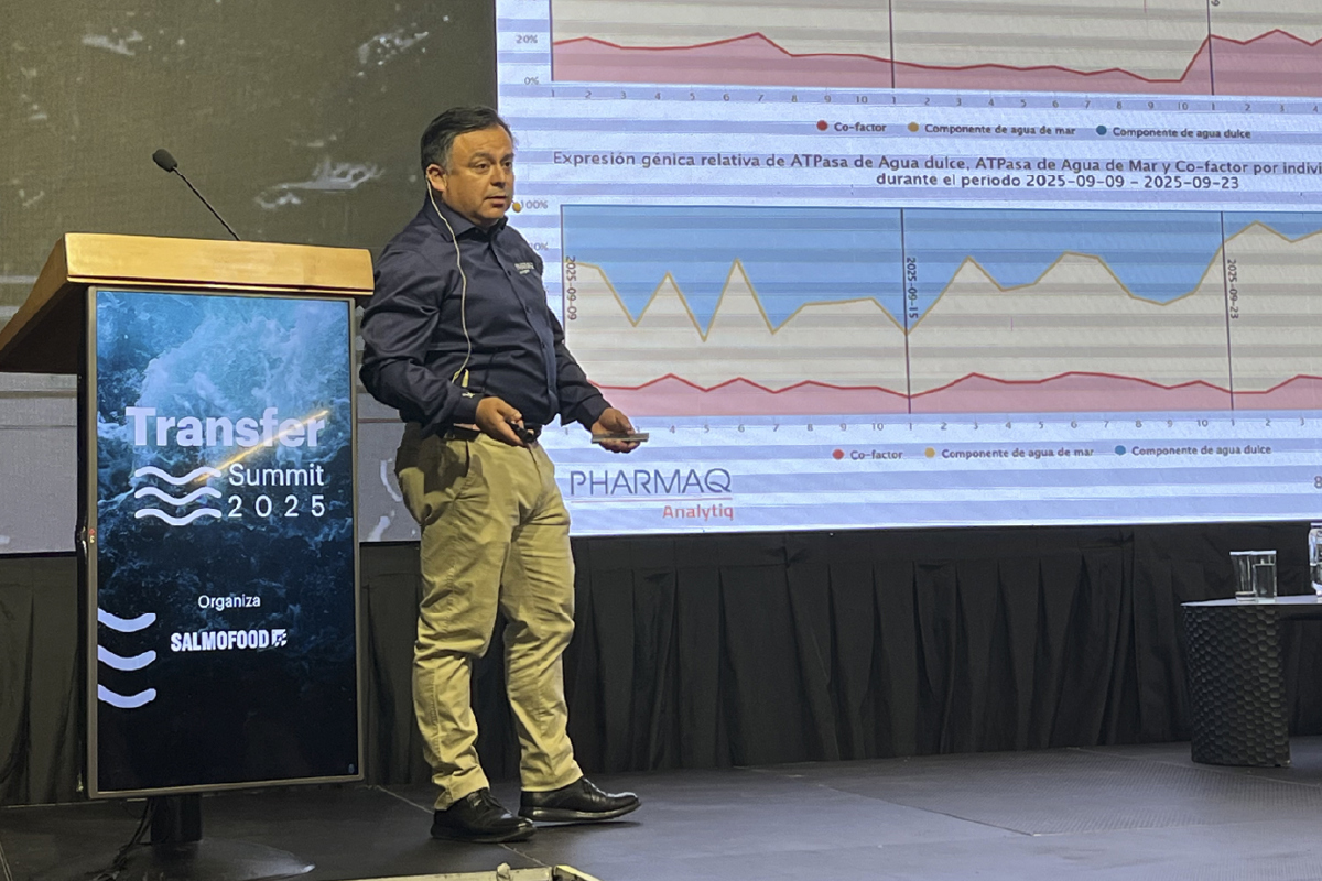 Con una mirada centrada en la ciencia y la innovación aplicada a la acuicultura, PHARMAQ Analytiq participó del “Transfer Summit 2025”, primer encuentro en Chile dedicado exclusivamente a la esmoltificación y transferencia de salmónidos. En la instancia, el médico veterinario y Project Manager & Customer Support, Claudio Arcos, presentó la charla “Smoltvision y la adaptación del salmón: un enfoque molecular para mejorar el rendimiento en mar”, destacando cómo esta tecnología permite anticipar el éxito de la transferencia de los peces desde el agua dulce al mar.